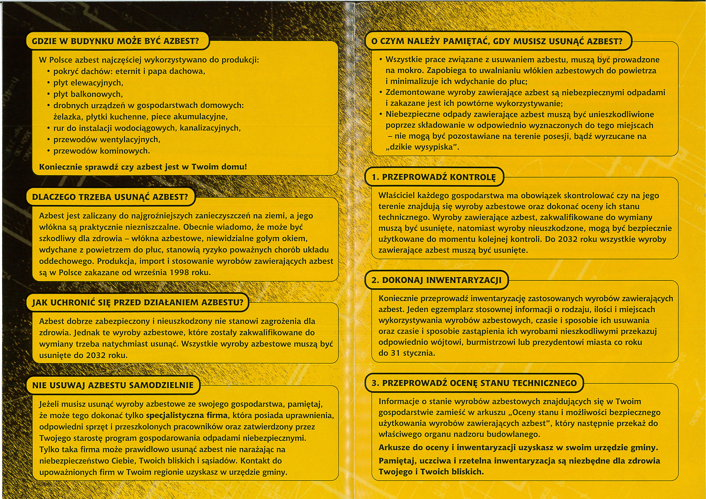 - usunięcie i unieszkodliwienie wyrobów zawierających azbest;