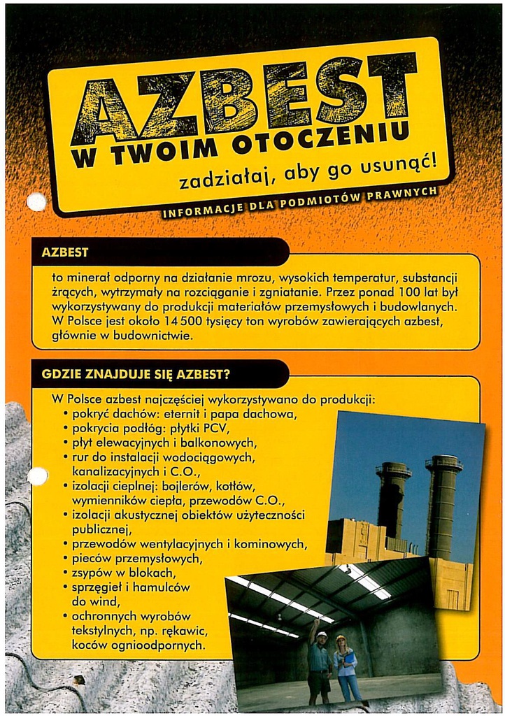 - likwidacja szkodliwego oddziaływania azbestu na środowisko.